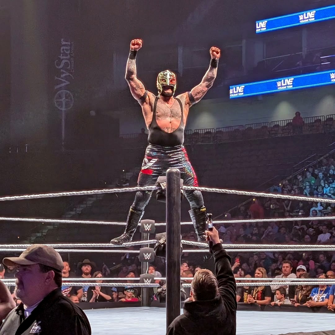 | 2025-12-28 | WWE House Show (Jacksonville, Florida, USA) | Low Cut Singlet (Black) Mask: Shiny w/ Flags Tights, Logos: Black w/ Red [w/o mask] |